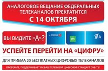 14 октября 2019 года в Республике Татарстан предстоит полномасштабный переход на цифровое телевещание, в рамках которого будет отключено аналоговое эфирное телевещание.