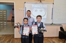 Сегодня наши учащиеся 4А класса Латыпов Роман и Шиябутдинов Рамэль приняли участие в муниципальных соревнованиях "Робо - сумо".