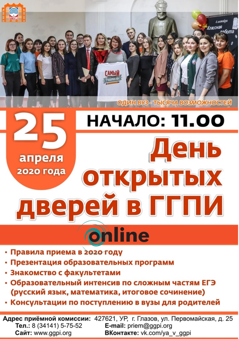 Опубликовано: 21.04.202025 апреля 2020 г. день открытых дверей в ГГПИ online