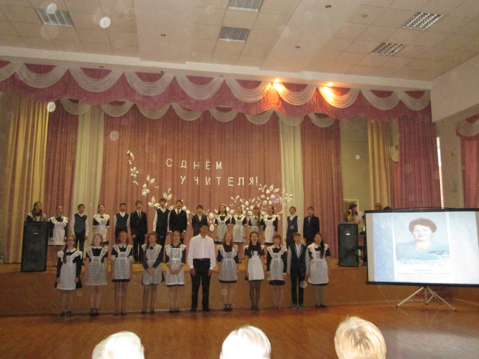 День Учителя – один из самых любимых праздников в нашей стране. Этот день дарит хорошую возможность всем, кто желает выразить глубокие чувства благодарности и признательности своим Учителям. В нашей школе ежегодно в преддверии праздника преображаются классы, рекреации, открываются новые выставки, проводятся концерты. И этот год не стал исключением. С самого утра ученики встречали всех учителей с букетами цветов и сюрпризами. Приглашены ветераны педагоги на праздничный концерт. Атмосфера, царившая в этот день в актовом зале, была торжественной и неформальной одновременно: радость встречи педагогов-ветеранов и общения с коллегами, теплота произнесенных со сцены поздравлений, волнение выступавших. Состоялся концерт, посвященный одному из самых вдохновенных и трогательных праздников — Дню учителя. А сам праздничный концерт «Учитель, перед именем твоим...» - это творческие выступления учеников нашей школы, душевные песни и веселые танцы, театральные этюды, наполненные искрометным юмором. Во время праздника на сцене можно было увидеть и учителей. Набиева Г.Ф., Коробейникова К.А. вместе со своими учениками исполнили песни, посвященные нашим учителям. Праздник всем очень понравился.СПАСИБО ВАМ, НАШИ УЧЕНИКИ, ЗА ТАКОЙ КОНЦЕРТ. -