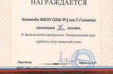 Поздравляем команду нашей школы со 2 местом в интеллектуальном конкурсе "Дебаты-2015"!