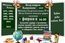 Вечер состоится 1 февраля 2020 года в 16.00 часов в актовом зале школы.