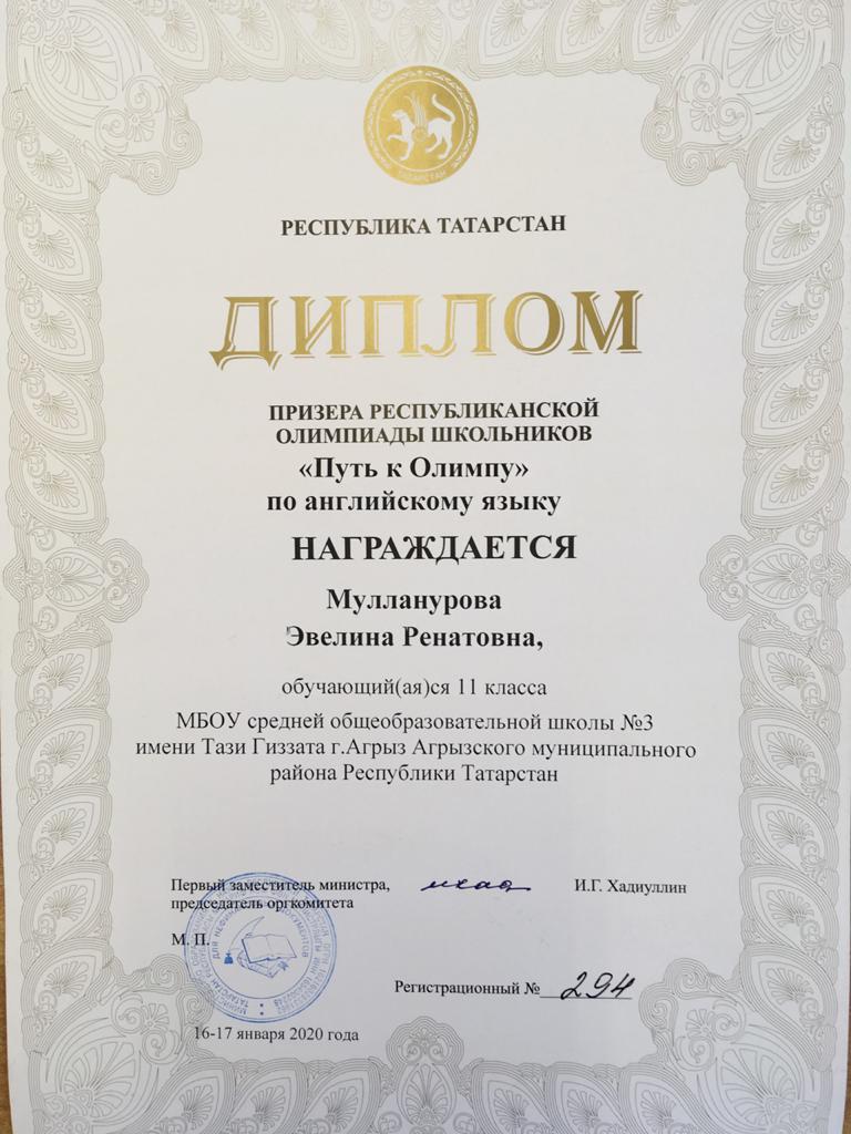 Республиканская олимпиада школьников по английскому языку «Путь к Олимпу» 20.01.2020