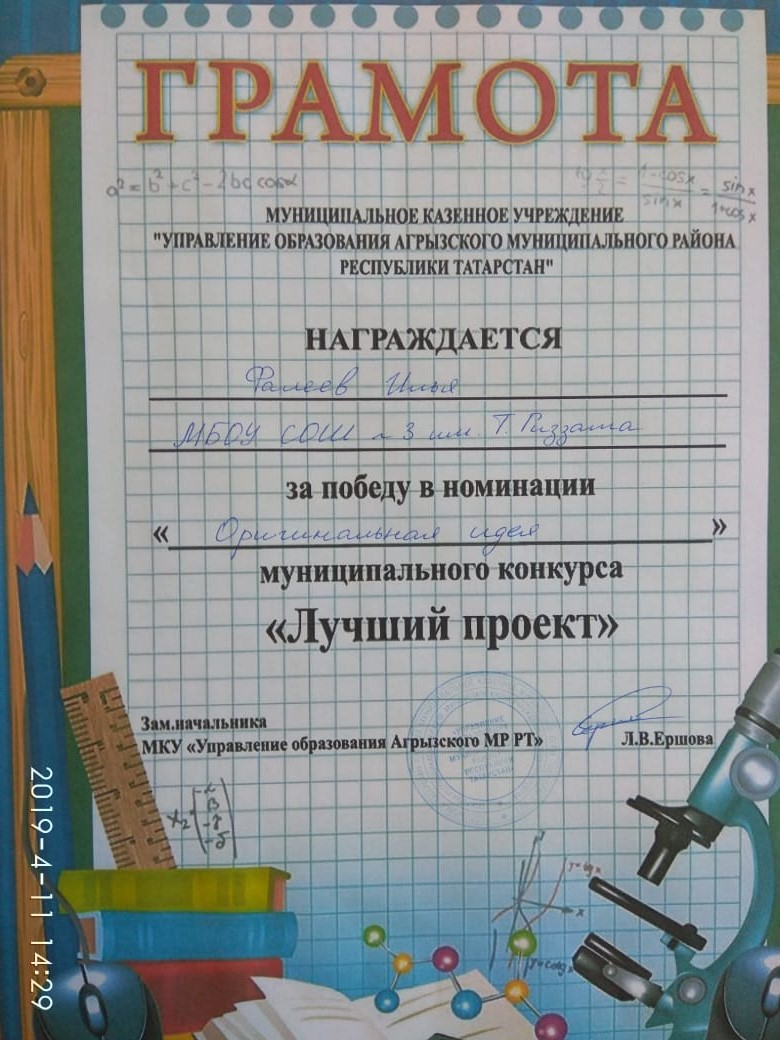 Сегодня у нас в школе прошел очный этапи муниципального конкурса творчества одаренных детей "Лучший проект". Нашу школу представляли Вагапова Аделина, ученица 10 класса с проектом "Дракон" и Фалеев Илья, ученик 7б класа с проектом "Моя школа".