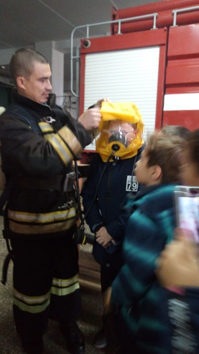 В пожарной части ребятам провели экскурсию по зданию. Показали караульные помещения, дежурно-диспетчерскую службу, помещение для отдыха. Дети задавали много вопросов. Зрелищное действие произошло в гараже боевых машин. Пожарный показал ребятам предметы боевой одежды, пожарно-спасательное оборудование. Даже девчонкам было интересно примерить боевую одежду. Ребятам рассказали об имеющихся в распоряжении пожарной части пожарных машинах, что с ними связано, как они работают, чем оборудованы. Дети с большим интересом слушали огнеборцев. Оказывается, пожарный автомобиль таит в себе большой арсенал для тушения возгораний. Особого внимания удостоился автомобиль для проведения аварийно спасательных работ. Ученики узнали, что в городе и в деревне нужны разные машины для тушения пожара. При этом они лично убедились, как сложна, опасна данная работа. Дети с большим интересом слушали и задавали интересующие их вопросы. Экскурсия прошла в дружеской атмосфере.
