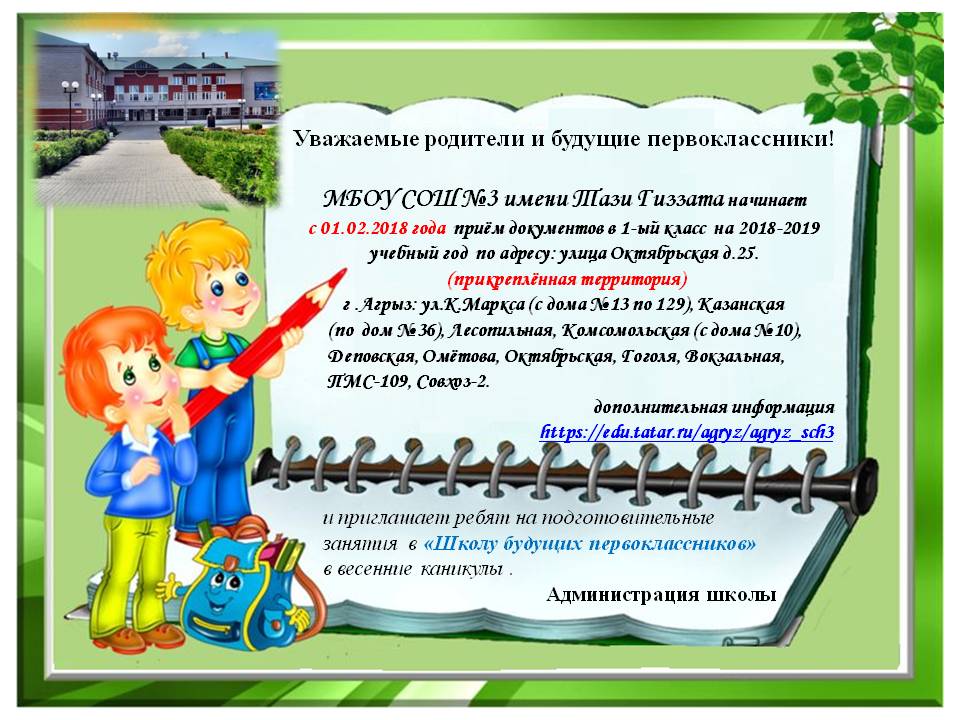 Положение о приеме детей в МБОУ СОШ № 3 имени Т.Гиззата г. Агрыз