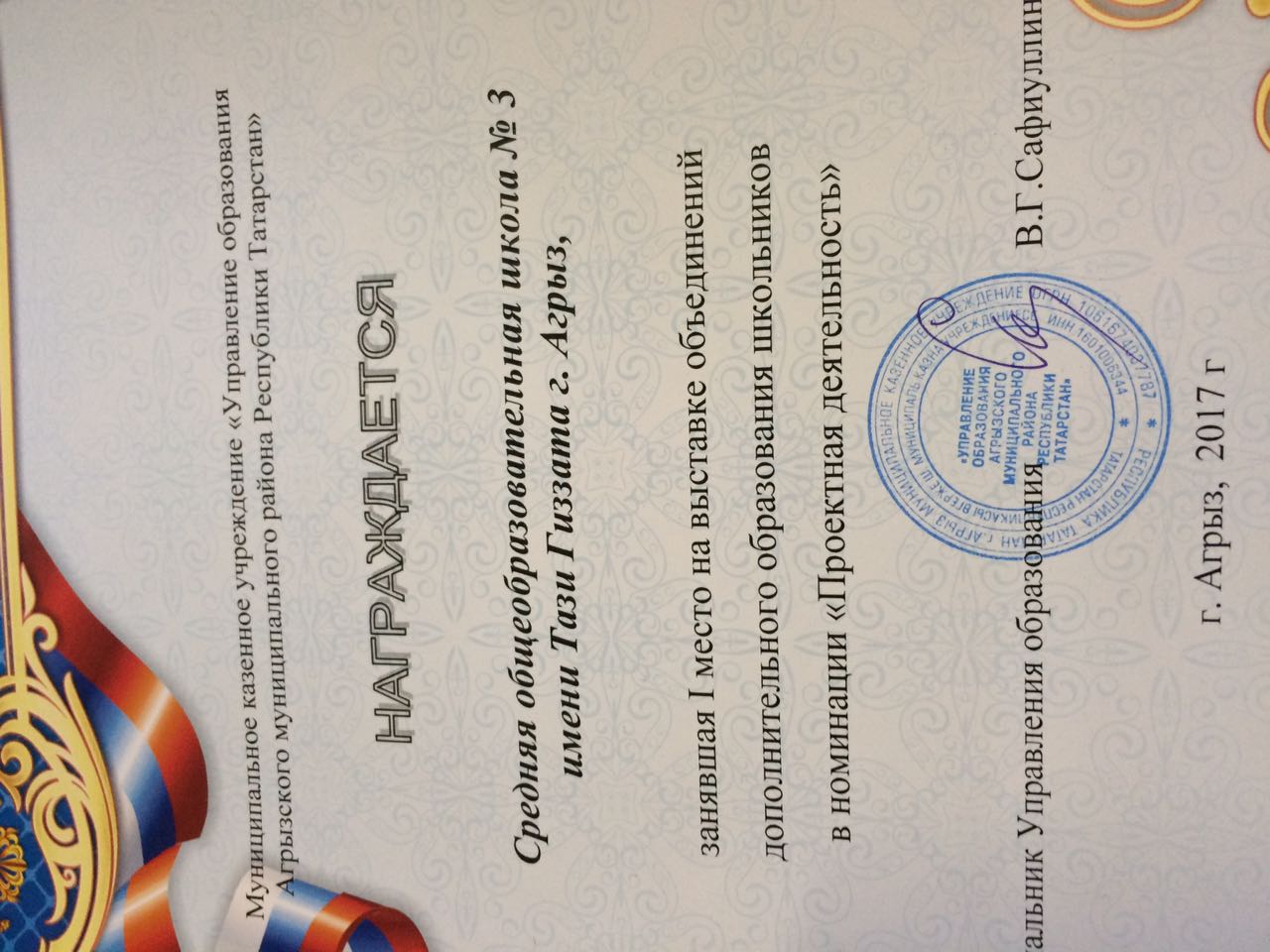 К педагогической конференции педагогой Агрызского муниципального района была организована выставка объединений дополнительного обрзования школьников. В номинации "Проектная деятельность" мы заняли 1 место. МОЛОДЦЫ!!!!!!