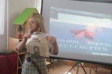 Учащиеся 8а класса посетили выставку «Татарстан в годы Великой Отечественной войны 1941–1945 гг.», организованную сотрудниками центральной детской библиотеки. Выставка, посвященная подвигу наших земляков на фронте и в тылу в годы Великой Отечественной войны, отражению вклада ТАССР в Победу над фашизмом. На выставке были представлены плакаты с изображением фотографий, писем, грамот, афиш, в которых был отражен подвиг наших земляков на фронтах и в тылу в годы Великой Отечественной войны, а так же документальные факты, музейные экспонаты времен Великой Отечественной Войны, лучшие сборники стихов поэтов периода военных лет и послевоенного периода. Библиотекарями был проведен обзор к выставке.