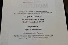 Ученик 7б класса Корепанов Артём стал призёром заключительного этапа республиканской Олимпиады школьников "Путь к Олимпу", учитель Нурмеева А. С. Так держать!