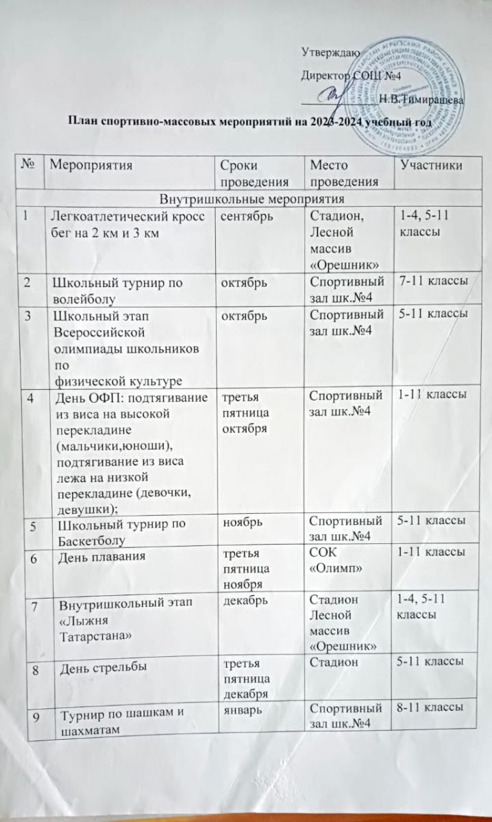 План спортивно-массовых мероприятий на 2023-2024 учебный год