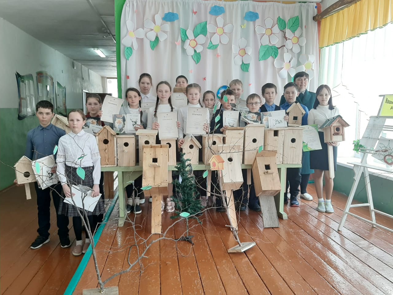 Опубликовано: 13.04.2022В Бимской школе проведён традиционный конкурс, посвящённый птицам. Учащиеся приняли активное участие в конкурсе. Изготовили и развесили скворечники. На мероприятии приняла участие методист ГПКЗ Киске Тан Нугуманова Альфия. Победители и призёры экологических мероприятий отмечены Грамотами. Школе подарен третий выпуск Красной Книги РТ.