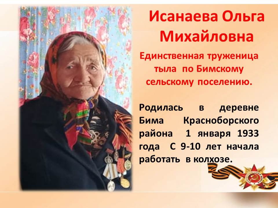 Опубликовано: 06.05.2023Волонтеры Победы Бимской СОШ поздравляют с Днем Победы единственную в селе труженицу тыла Исанаеву Ольгу Михайловну, Желаем крепкого здоровья, мирного неба над головой.