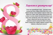 Барыбызга да билгеле әлеге айның иң матур иң олы бәйрәме — Сигезенче март — Халыкара хатын-кызлар көне. Хөрмәтле гүзәл затлар! Табигатнең суыктан җылылык чорына омтылган мизгеленә туры килгән бәйрәмегез һәрвакыт җылы матур истәлекләр генә калдырсын. -