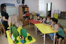 В рамках Всемирного дня театра детьми подготовительной группы в группе раннего возраста №4 был показан кукольный театр "Теремок".
