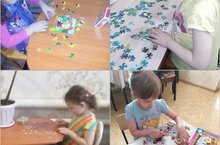 А сегодня у нас конкурс на развитие мелкой моторики, быстроты, внимания "Кто быстрее соберет пазл". Сидя дома, тоже можно соревноваться, но конечно же, всё под контролем воспитателя Шавалиевой Е.В.