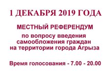 1 декабря 2019 года МЕСТНЫЙ РЕФЕРЕНДУМ по вопросу введения самообложения граждан на территории города Агрыза.