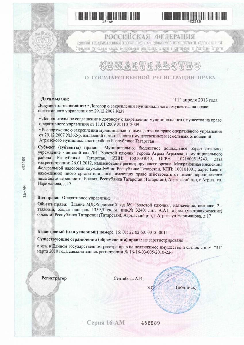 Муниципальное бюджетное дошкольное образовательное учреждение - детский сад №1 "Золотой ключик" города Агрыз Агрызского муниципального района Республики Татарстан