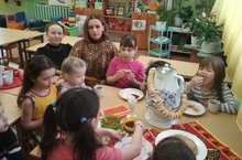 В подготовительной группе по традиции каждый год Смирнова Е.А. организует масленичную неделю. С самого утра, как только дети приходят в детский сад их ждет праздничный стол с блинами, медом, самоваром с сопровождением русских народных песен. Угощаются и родители, сотрудники и дети. Всех с масленицей!!