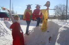 Весело прошли проводы Зимушки в нашем детском саду. Вместе со скоморохами дети плясали, пели, говорили потешки и кричалки. Не обошлось и без проказницы Бабы Яги, она украла Весну, спрятала и никак не хотела ее отдавать. Придумывала испытания, загадки, но наши дети оказались умными, ловкими и быстрыми, справились со всеми испытаниями. Пришла Весна с солнышком, птицами и цветами. Праздник удался на славу! В конце праздника всех детей угостили вкусными блинами.