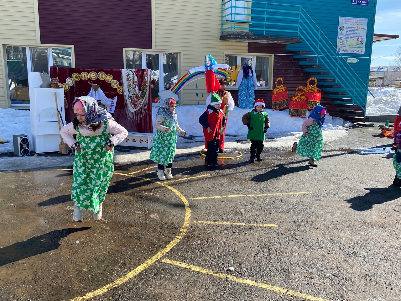Коллективы дошкольников ДОУ города Агрыз представили красочные творческие номера: ДОУ №1 - творческий коллектив «Танцевальное конфетти» с задором исполнили русский народный танец «Барыня», ДОУ №6 - творческий коллектив «Ладушки» спели «Частушки – веселушки», ДОУ №5 - творческий коллектив «Росинки» подняли настроение фольклорным танцем «А я чайничала…», ДОУ №8 - творческий коллектив « Капельки» сыграли на ложках «Веселые ложкари», ДОУ №7 - творческий коллектив «Зорюшка» оркестр ложкарей удивили зрителей красивой игрой на ложках в музыкальной композиции « Варенька», ДОУ №4 - творческий коллектив «Солнышко» закрыли фестиваль народного творчества красочным танцем «Прощай, Масленица». Всех гостей праздника герои угостили вкусными блинами и подарили памятные сувениры «Кукла Масленичка». В память о встрече участники праздника сделали яркие фото у тематической композиции. И дети и взрослые получили много радостных, положительных эмоций. До новых встреч!