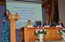 26 августа 2015 года на пленарном заседании Августовской конференции педагогов Агрызского муниципального района РТ наша заведующая Наталья Борисовна Красноперова выступила в качестве содокладчика начальника МКУ «Управление образования» Агрызского муниципального района РТ Васили Гарафутдиновны Сафиуллиной с темой: «Обновление работы дошкольной образовательной организации с введением ФГОС». Прозвучавший доклад содержал в себе подведение итогов работы МБДОУ «Детский сад №9», как пилотной экспериментальной площадки по внедрению ФГОС ДО.
