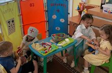 Сегодня наши малыши активно участвовали в увлекательной сюжетно-ролевой игре «Больница», направленной на раннюю профориентацию детей младшего возраста.