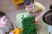 А вот и подрастают наши маленькие защитники природы. Посмотрите как бережно поливают они рассаду и как внимательно слушают воспитателя Батырову Ю.В., которая провела беседу "Земля - наш общий дом"