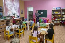 Средняя группа N6 за занятием по рисованию (воспитатель Анисимова К.М.) -