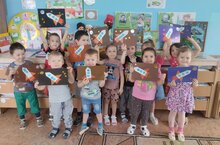 В подготовительной группе 11 воспитатель Шушакова Л.И. провела беседу про День Космонавтики и вместе с ребятами выполнили коллективную работу -