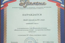 Наш детский сад принял участие в муниципальном этапе Всероссийской акции "Физическая культура и спорт - альтернатива пагубным привычкам" и занял 1 место в номинации "Наша спортивная страна".
