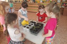 Вот так вот дружно воспитанники старшей группе N11 ухаживают за рассадой (воспитатель Шушакова Л.И.) -