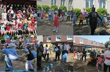 Создали настоящий веселый праздник. Были игры, песни, танцы, приходили клоуны Ириска и Карамелька, в конце праздника дети рисовали на асфальте цветными мелками рисунки и пускали мыльные пузыри. Этот день стал и для них незабываемым, наполненных праздничных радостей.