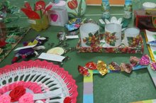 Сегодня, в средней группе , в рамках экологической акции "Сбережем планету!", прошла выставка творческих работ под названием "Изделия из бросового материала".