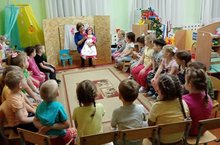 В детском саду №5 адаптационный период для воспитанников младших дошкольных групп постепенно подходит к завершению. С целью укрепления эмоциональных контактов между детьми и взрослыми, в ДОУ была организована театрализованная постановка по русской народной сказке « Теремок» с участием детей и педагогов - кукол с «живыми» руками. Мероприятие прошло в доброжелательной, дружеской атмосфере и подарило воспитанникам заряд положительных эмоций и хорошее настроение. Дети с желанием участвовали в играх и плясках, свободно вступали в диалог с персонажами сказки.
