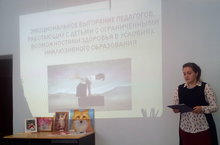 На муниципальном практико-ориентированном семинаре "Роль педагога-психолога в образовании" с тренингом на тему : " Эмоциональное выгорание педагогов, работающих с детьми с ОВЗ в условиях инклюзивного образования" выступила педагог-психолог нашего ДОУ Зайнутдинова А.Р.