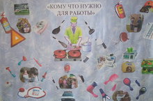 В соответствии с планом ДОУ по профориентации детей старшего дошкольного возраста 17.04.18. было проведено итоговое мероприятие - выставка коллажей на тему: "Кому, что нужно для работы".