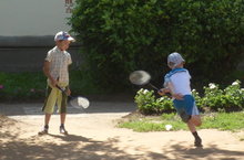 Ребята играли в игры с мячом: футбол, волейбол, баскетбол, принимали участие в эстафетах, играли с летающей тарелкой, катались на самокатах, велосипедах.