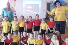 12 апреля в нашем детском саду прошел тематический день, посвященный Дню космонавтики. Дети совершили загадочное путешествие в космосс. Во время "полета" дети играли в интересные игры, читали стихи о космосе.