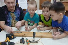 В старшей группе продолжается работа над реализацией проекта на основе гендерного воспитания "Секреты домашнего мастерства". Мальчики познакомились с инструментами, которые необходимы в работе с деревом и кожей, научились с ними работать, узнали технику безопасности. Познавательно и интересно провели время.