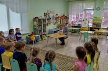 В рамках "Встреча с интересными людьми" к нам в среднюю группу №1 заглянула в гости библиотекарь Закирова Р.Р. Дети с большим удовольствием слушали сказки В. Сутеева "Палочка-выручалочка" и "Яблоко".