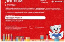 Поздравляем наших воспитанников, Исхакову Руслану и Насибуллина Аяза с успешным выступлением и заслуженными дипломами во Всероссийском конкурсе "По стопам Менделеева". Желаем не останавливаться на достигнутом результате, всегда двигаться вперед, покорять новые вершины. Вперед к новым победам!