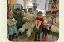 В гости к детям подготовительной группы 2 были приглашены дети 1 младшей группы. Малышам очень понравилась коллекция из мягких белых медведей.