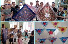 В рамках педагогического проекта в подготовительной группе №2 с воспитанниками продолжали знакомство с народами Поволжья. Читали сказки, слушали народные песни, играли в подвижные и дидактические игры. В творческой мастерской слепили народные игрушки и национальные блюда народов Поволжья. Также познакомились с национальными орнаментами одежды.