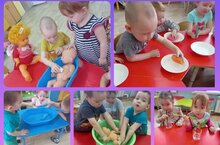 В группе раннего возраста прошел краткосрочный проект "Водичка, водичка..." Целью проекта являлось формирование у малышей элементарных представлений о свойствах воды через различные виды деятельности. Дети играли с водой, пускали кораблики, купали кукол.