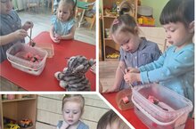 В первой младшей группе прошла опытно-экспериментальная деятельность "Игры с губкой". Дети учились ловить мокрую губку, развивали координационные движения обеих рук.