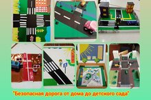 Дети подготовительной группы совместно с родителями изготовили макет по ПДД на тему "Безопасная дорога от дома до детского сада".