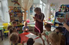 Сегодня к детям второй младшей группы приходила библиотекарь Резеда Радиковна из Центральной детской библиотеки. Дети слушали сказку Колобок, а потом с удовольствием обыгрывали героев сказки.