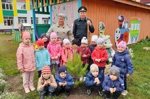 Сегодня дети средней группы знакомились с профессией - лесник. В гости приходил Ишмуратов Владимир Леонидович - руководитель-лесничий ГКУ Агрыского Лесничества. В подарок детям принёс и помог посадить красавиөу сосну.