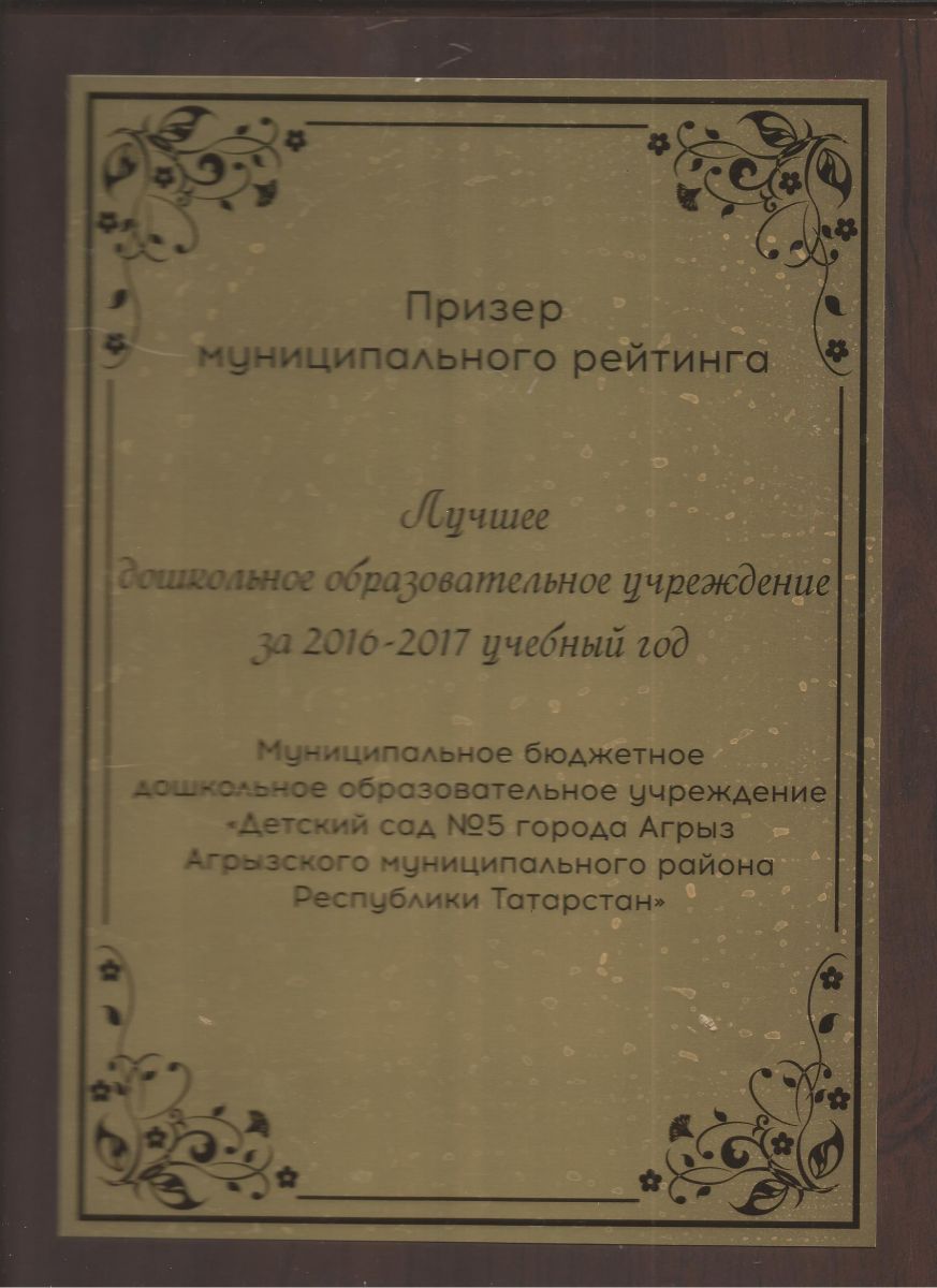 Призер муниципального конкурса "Лучшее образовательное учреждение", 2016 год.