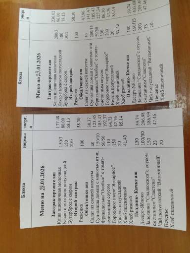 Меню на 21 января Меню на 22 января Меню на 23 января Меню на 26 января Меню на 27 января Меню на 28 января Меню на 29 января